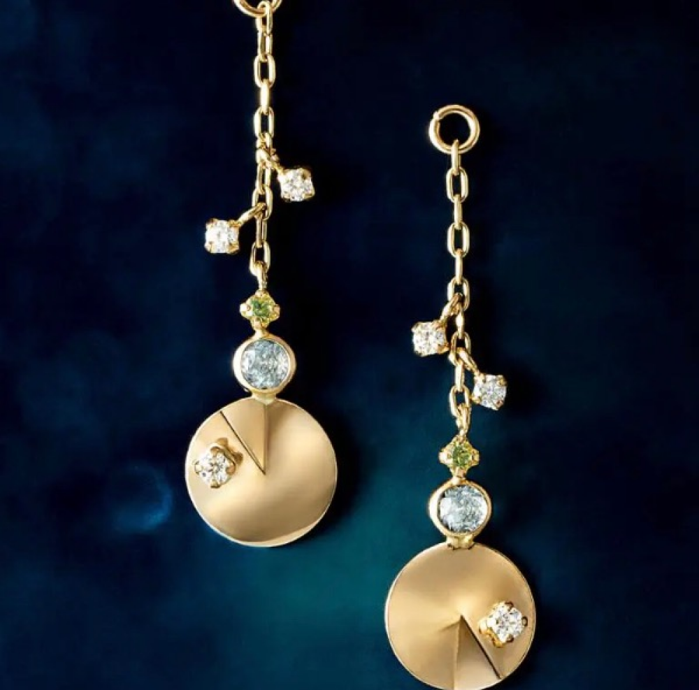 月のクレーターの凹凸感をイメージした金属部分にはV字のラインとモアサナイトを1石あしらっており、円のパーツを左右非対称にすることで自転と月の裏側も表現したこだわりの詰まったデザインです🌕✨